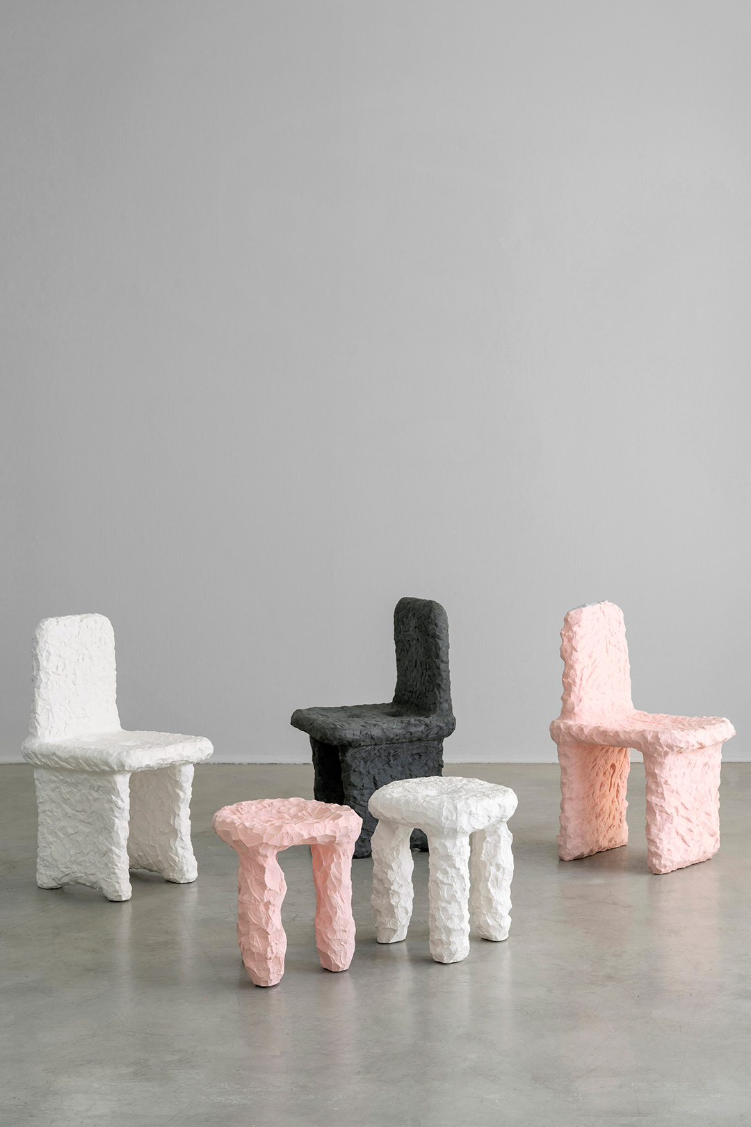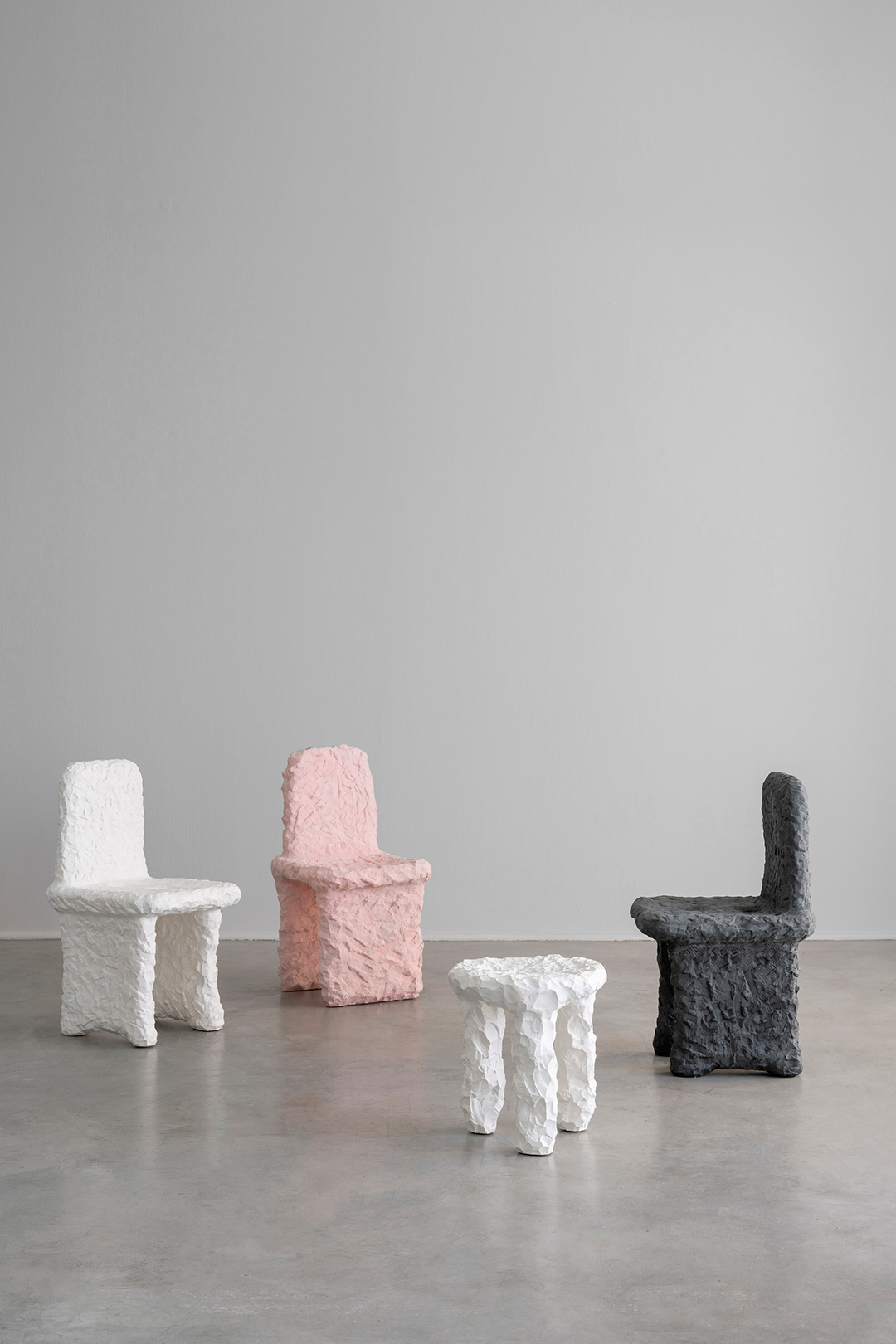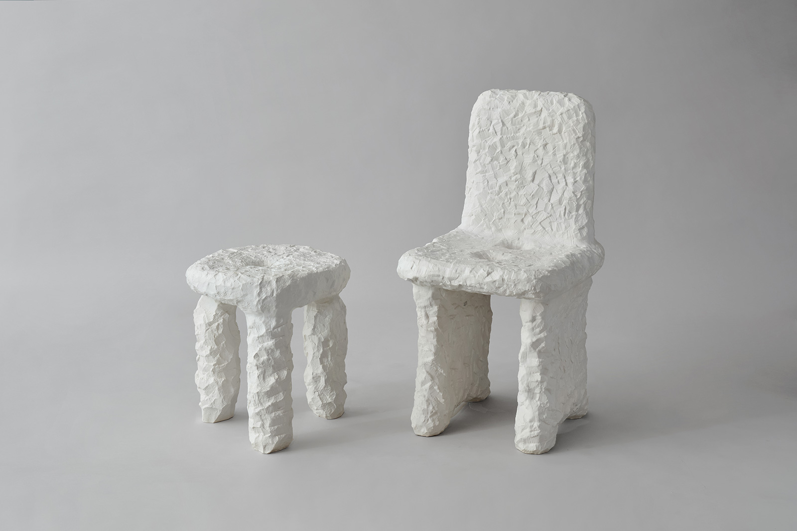 Gallery FUMI is pleased to present Crockery: an exhibition of new works by designer Max Lamb in collaboration with 1882 Ltd., a contemporary ceramics factory based in Stoke-on-Trent, opening on 11 September 2025. The works are crafted using slip-cast earthenware from plaster models meticulously carved by hand. An embodiment of the innovative spirit of both Lamb and 1882 Ltd., this series challenges the conventional perception of ceramics as delicate and unsuitable for functional design. “Ceramic, often perceived as fragile and untouchable, intrigued me - especially because ceramic furniture is so rare. I wanted to explore its potential, not just as a sculptural medium but as a material capable of supporting the human form.” The process begins with the heritage technique of slip-casting, traditionally reliant on a three-dimensional master model to produce a mould. However, for the Crockery series, this step is uniquely bypassed. Max Lamb serves as both designer and model-maker, using the tools of a stone mason to chip and carve solid blocks of plaster by hand. Exhibited will be two designs of chair and two designs of stool, with each product taking weeks to make, with all 23 potters at 1882 Ltd. involved in a meticulous process with the possibility of disaster at every stage. From filling the mould, tipping the mould, releasing the mould and then sticking up the chair, to the 3 week drying process and 36 hour firing cycle at 1140 degrees, the margins for error are as slim as they are for perfection. “Ceramic is unpredictable,” says Emily Johnson, founder of 1882 Ltd. “It shrinks, sags and transforms during firing. At over 1,100°C, it behaves like molten glass. Each piece is a true collaboration between Max and our master potters, who bring centuries of combined experience to ensure these ambitious designs are realised.” These works represent not just chairs and stools, but a bold statement on craftsmanship and collaboration, marking a milestone in a longstanding relationship between Lamb and 1882 Ltd.