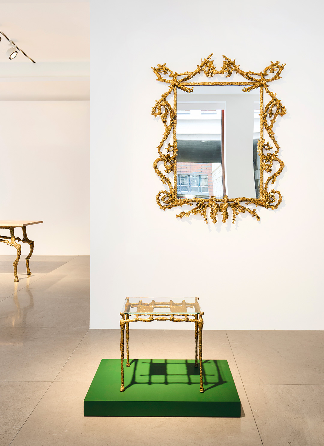 This is a spirit that has continued into the rococo sauvage collection. “They could be antiques,” he adds. In these objets décoratifs, there is also a sense of the artisanal or handmade. Cemin starts each design with many sketches and drawings, and for this collection, each object was made at the same scale as its maquette. Despite their disparities in scale, Cemin is well known for his large-scale works, many of which animate public spaces; he does not create a sense of distinction between his sculptural and design work. “There is continuity. For me to make a sculpture or make a table, it’s the same thing,” he notes. “Da Vinci said that art lives off constraints and dies of excessive freedom. I find design difficult because of the challenge, but I like the challenge.”